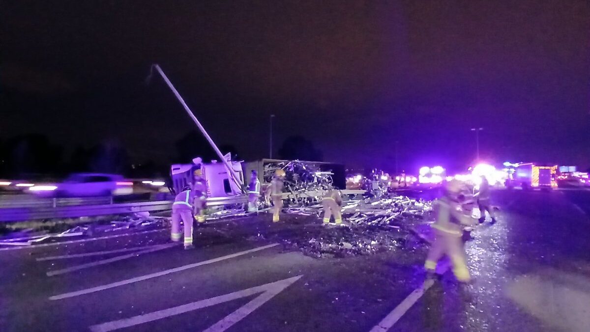 L’AP-7 ha registrat retencions quilomètriques al Papiol (Baix Llobregat) a causa d’un camió que ha bolcat a la mitjana mentre circulava en sentit nord i que ha tallat sis carrils de la carretera, tres en cada sentit, segons ha informat el Servei Català de Trànsit (SCT). El sinistre ha arribat a causar sis quilòmetres de retenció en sentit sud, entre el Papiol i Sant Cugat del Vallès, mentre que en direcció Girona les cues han estat de fins a cinc quilòmetres, del Papiol a Castellbisbal. Els Bombers han treballat amb sis dotacions en el sinistre. El camió, carregat amb ferralla, ha perdut la càrrega a causa de la bolcada. Poc després de les set de la tarda, l’SCT ha informat de la reobertura de dos carrils en sentit sud.