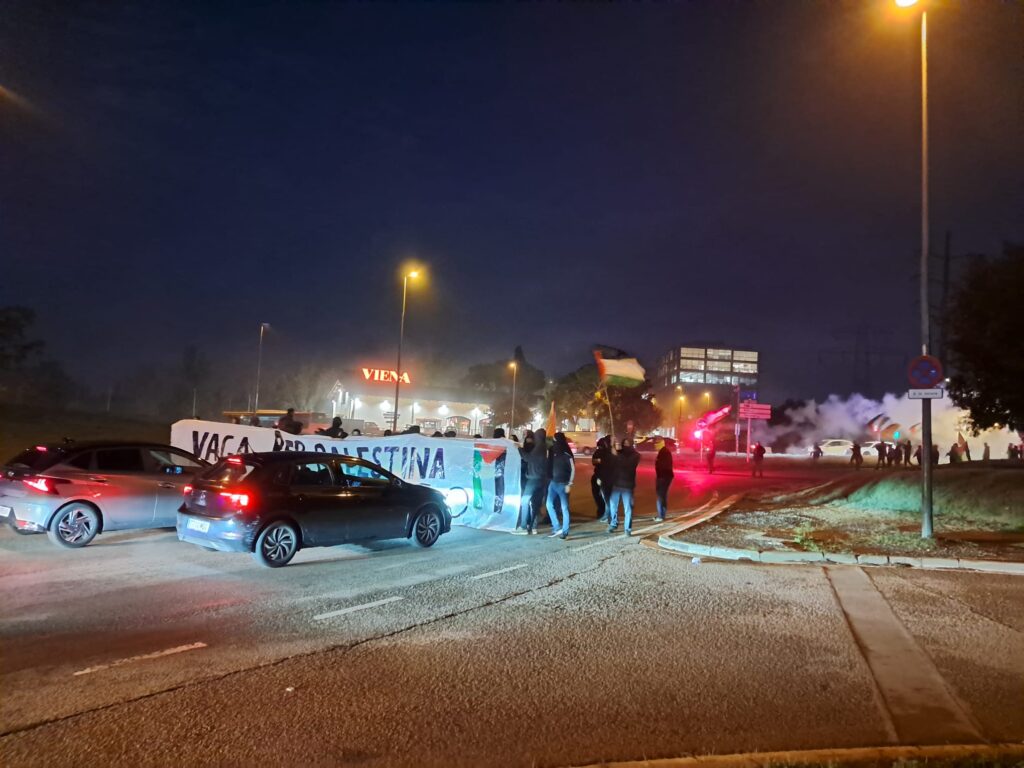 La plataforma Sant Cugat amb Palestina, amb una seixantena de persones, han tallat diferents vies des de la rotonda del centre comercial (de les 7 a les 8 hores del matí) amb motiu del dia de vaga amb solidaritat amb Palestina . Els talls han estat puntuals des dels dos accesos a l’AP-7 de Rubí. 8 dotacions policials, entre elles tres furgones Antiavalots dels Mossos, han intentat desviar el trànsit i també han carregat tímidament contra els manifestants. La comitiva dels manifestants ha estat integrada per una quarentena de santcugatencs i una vintena de rubinencs.