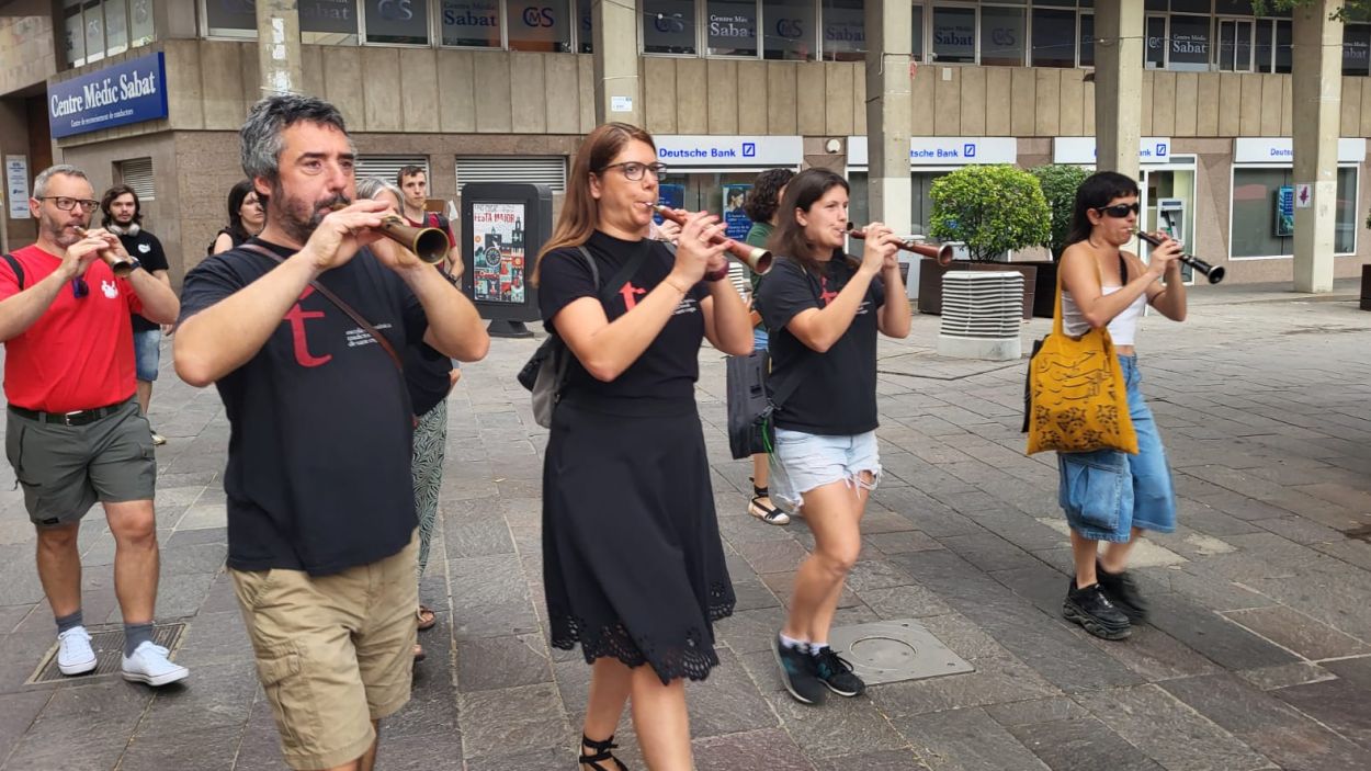 Han irromput a l’equador de la Festa Major a dos quarts de vuit del matí, malgrat el cel gris. Tot i la intensitat de divendres a la nit, grallers, timbalers i trabucaires han fet la tradicional cercavila pel centre sota de la mirada d’escombriaires i els que encara gaudien la festa als Jardins del Monestir.