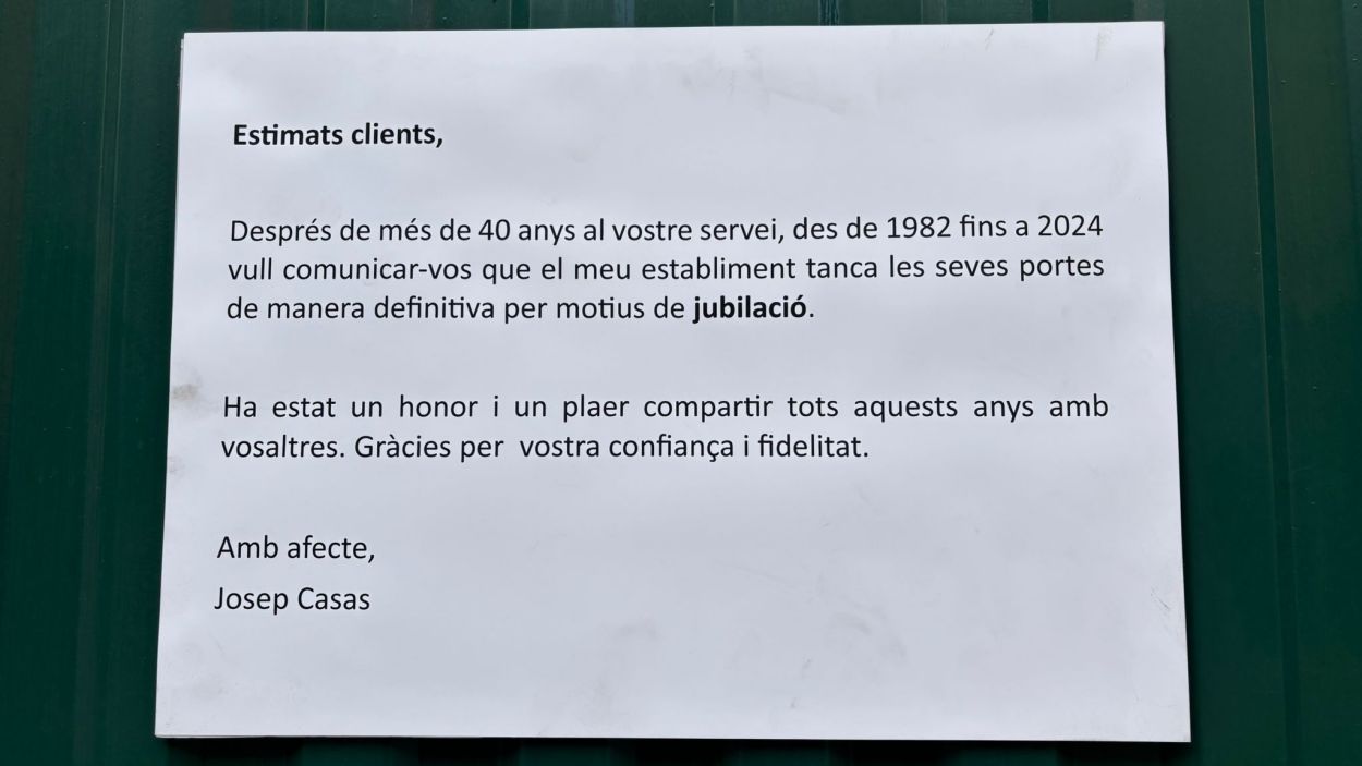 Un cartell enganxat a la porta del taller mecànic del carrer de Sant Jordi anuncia un comiat: “Vull comunicar-vos que el meu establiment tanca les seves portes de manera definitiva per motius de jubilació”. Josep Casas es retira després de 40 anys de servei i agraeix a la clientela la confiança: “Ha estat un honor i un plaer compartir tots aquests anys amb vosaltres”. Casas és, a més, conegut pels seus pessebres de finestra, que l’han fet mereixedor en diverses ocasions del reconeixement del concurs que organitza l’Ateneu Santcugatenc.