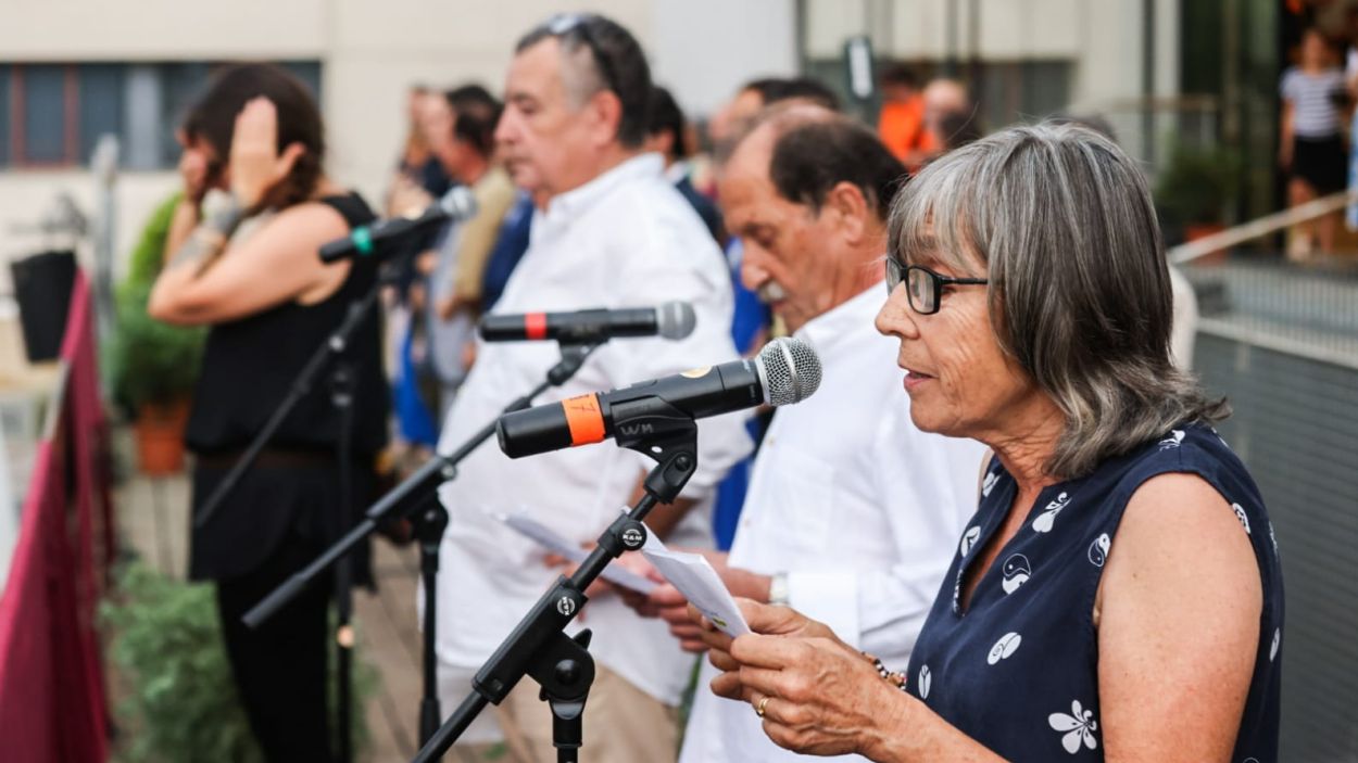 Rosa Sicart, Ricard de No i Modest Prenafeta de la Taula de Salut Mental llegint el pregó de la Festa Major / Ajuntament