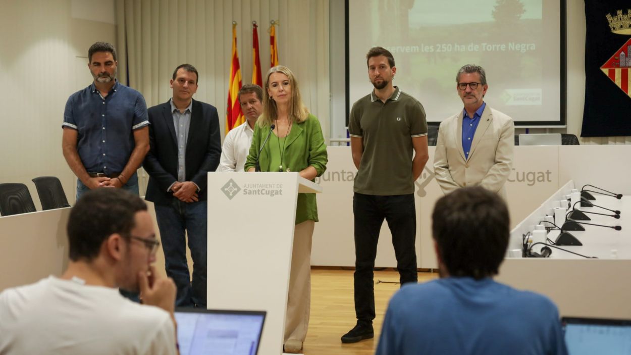 “Hem fet un pas, que ens agradaria que fos el definitiu, però estem gairebé a tocar. Passi el que passi seguirem compromesos amb la ciutat i en defensar Torre Negra”, ha afirmat en roda de premsa l’alcaldessa, Mireia Ingla, a la qual ha estat acompanyada per tots els portaveus municipals. Una imatge que escenifica el consens polític que la preservació de Torre Negra ha tingut durant tot aquest temps i que també han destacat els portaveus del PSC, Pere Soler, i de la CUP, Marco Simarro, com a reflex de la voluntat ciutadana. També han fet costat els portaveus de Junts per Sant Cugat, Josep Maria Vallès, i de Ciutadans, Aldo Ciprian. Tot dos han defensat la protecció de la construcció d’aquest àmbit, que té a tocar el final del litigi sobre el seu ordenament, però que haurà d’abordar si se’n deriven drets compensatoris per als seus propietaris.