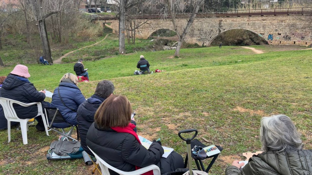 Els ‘sketchers’ són dibuixants urbans, persones que fan trobades en diferents espais dels municipis per capturar amb els seus pinzells, llapis i carbonets els paisatges. Aquest dissabte, una trentena de persones d’aquest moviment ha respost a la crida de Dibuixant Sant Cugat i s’ha reunit a l’entorn del pont de Can Vernet. La iniciativa, més enllà del vessant cultural i artístic, tenia rerefons reivindicatiu: reclamar una passera que connecti Coll Favà amb Sant Domènec i que es tingui cura de l’entorn natural de la zona.