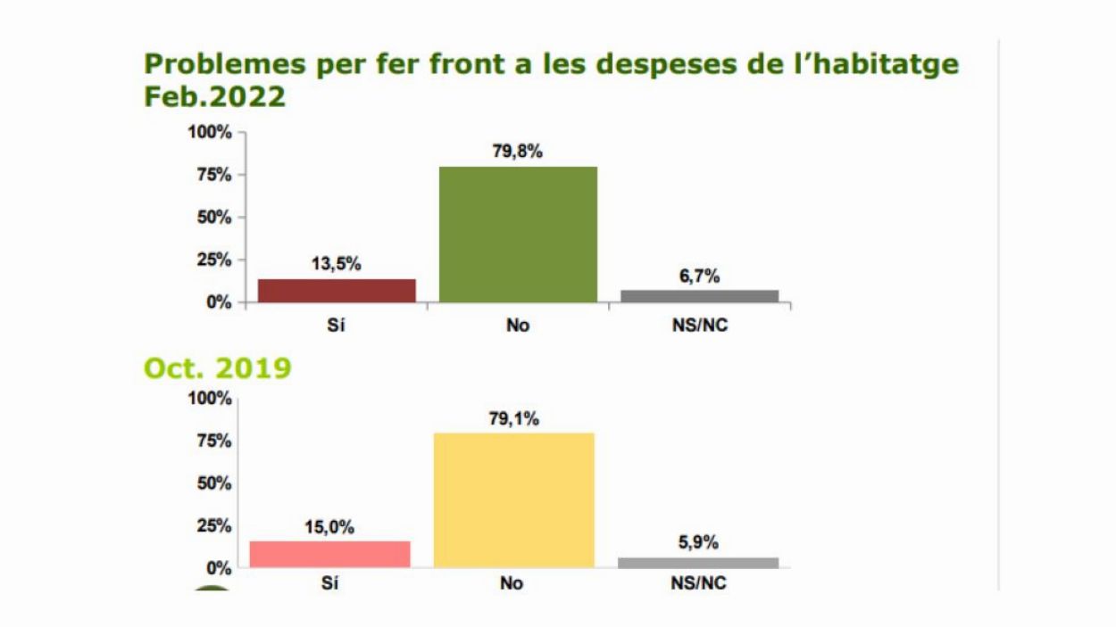 dels consultats i en destaca especialment la preocupació pels preus elevats. El 77,3% viu a un habitatge de propietat i el 20,5% de lloguer, tot i que la xifra de persones que tenen despeses derivades de la hipoteca o el lloguer és del 53,3%. Un 2,5% considera que l’immoble on resideix és precari.