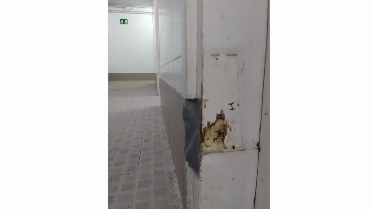 Humitats als sostre d’un dels vestuaris del PAV2 / Cedida