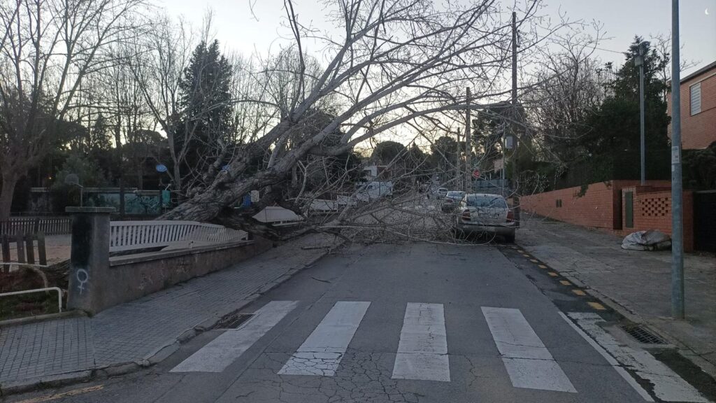 Fora de Sant Cugat, un arbre de grans dimensions ha tallat el trànsit a la carretera de Vallvidrera, redigirint-lo als Túnels, que han aixecat barreres. A primera hora de la tarda, els vehicles ja circulaven per la carretera.